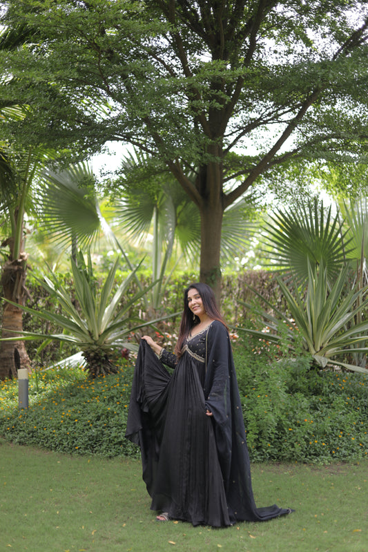 BLACK ANARKALI GOWN WITH NYRA CUT