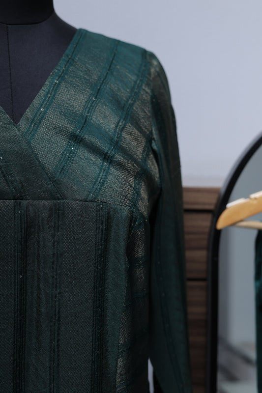 BOTTLE GREEN PRINCESS CUT KURTA PANT SET