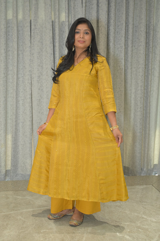 MUSTARD YELLOW PRINCESS CUT KURTA PANT SET