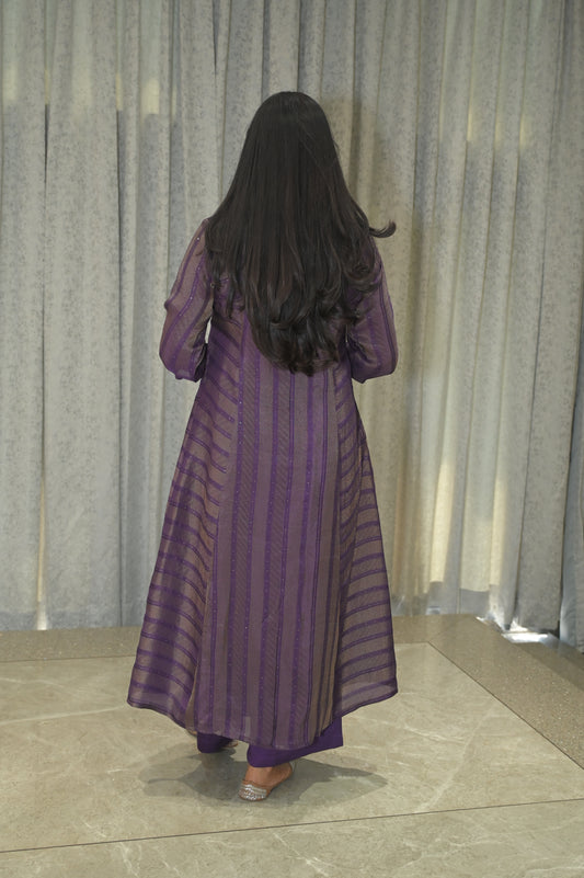 DEEP VIOLET PRINCESS CUT KURTA PANT SET